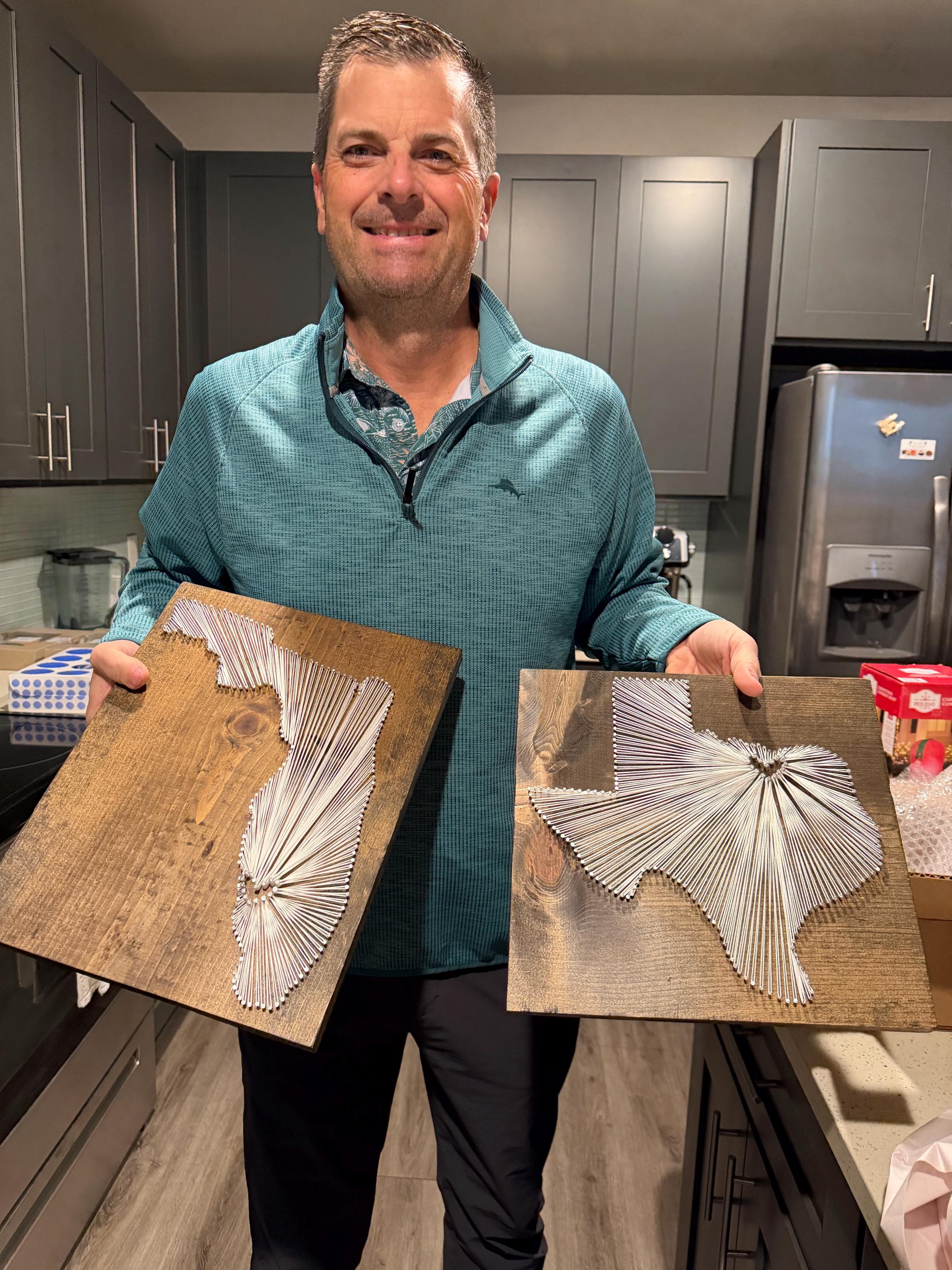 Give someone a one-of-a-kind gift with this custom-made string art state sign, featuring any state and city. The heart can be placed over any place special to you, whether it's where you were born, where you were married, where your kids live, where you went to college. There are so many possibilities! Military families or those who move around a lot have also enjoyed ordering multiples to showcase all the places they've lived.